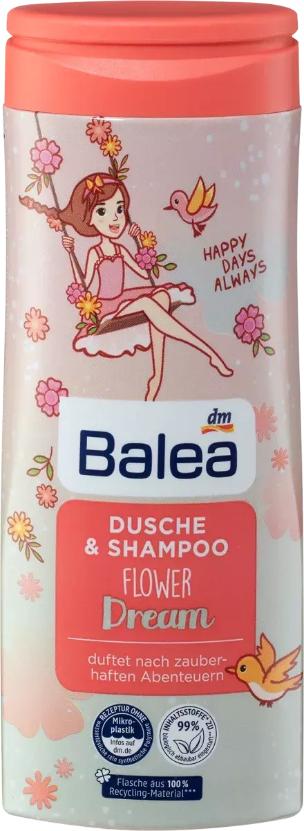 Odkryj magię kąpieli z Balea Flower Dream! Ten wyjątkowy szampon z żelem dla dzieci 2w1 sprawi, że mycie ciała i włosów stanie się prawdziwą przyjemnością. Dzięki delikatnej formule, produkt skutecznie myje młodą skórę, jednocześnie chroniąc ją przed wysuszeniem.