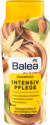 Odkryj moc regeneracji z szamponem Balea Intensivpflege o pojemności 300 ml. Ten wyjątkowy produkt, wzbogacony o zapach wanilii i olej migdałowy, skutecznie dba o zestresowane i zniszczone włosy, przywracając im blask i wyrazistość. Dzięki kompleksowi odbudowującemu z witaminą B3 oraz prowitaminą B5, szampon nie tylko oczyszcza, ale również regeneruje włosy, sprawiając, że stają się one jędrne, lśniące i zadbane.