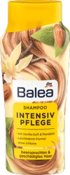 Odkryj wyjątkową pielęgnację swoich włosów z szamponem Balea Intensivpflege o pojemności 300 ml. Jego delikatna formuła, wzbogacona o zapach wanilii i olejek migdałowy, sprawia, że włosy stają się lśniące, zadbane i pełne życia. Szampon skutecznie regeneruje zniszczone pasma, przywracając im promienny połysk aż po same końcówki.