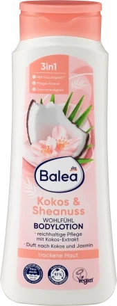 Balea Kokos & Sheanuss to balsam do ciała stworzony specjalnie dla suchej i zestresowanej skóry. Dzięki wyjątkowej formule z ekstraktem z kokosa, masłem shea i olejem z pestek winogron, zapewnia skórze 48 godzin intensywnego nawilżenia i relaksujące uczucie odprężenia. Bogactwo składników odżywczych sprawia, że skóra staje się miękka, elastyczna i promienna.