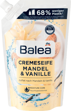 Odkryj odżywczą formułę Moisture Care, która dba o naturalną równowagę nawilżenia Twojej skóry. Mydło w kremie Balea o zapachu migdałów i wanilii nie tylko pielęgnuje, ale także rozpieszcza zmysły. Jego delikatna konsystencja sprawia, że jest idealne do codziennego użytku.