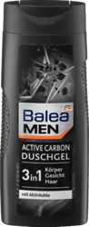 Balea Men Active Carbon to żel pod prysznic, który łączy w sobie funkcje pielęgnacyjne dla ciała, twarzy i włosów. Dzięki aktywnemu węglowi skutecznie oczyszcza skórę, zapewniając jednocześnie przyjemne uczucie świeżości każdego dnia. Jego łagodna formuła odżywia skórę i zapobiega jej wysychaniu, co sprawia, że staje się ona gładka i miękka.