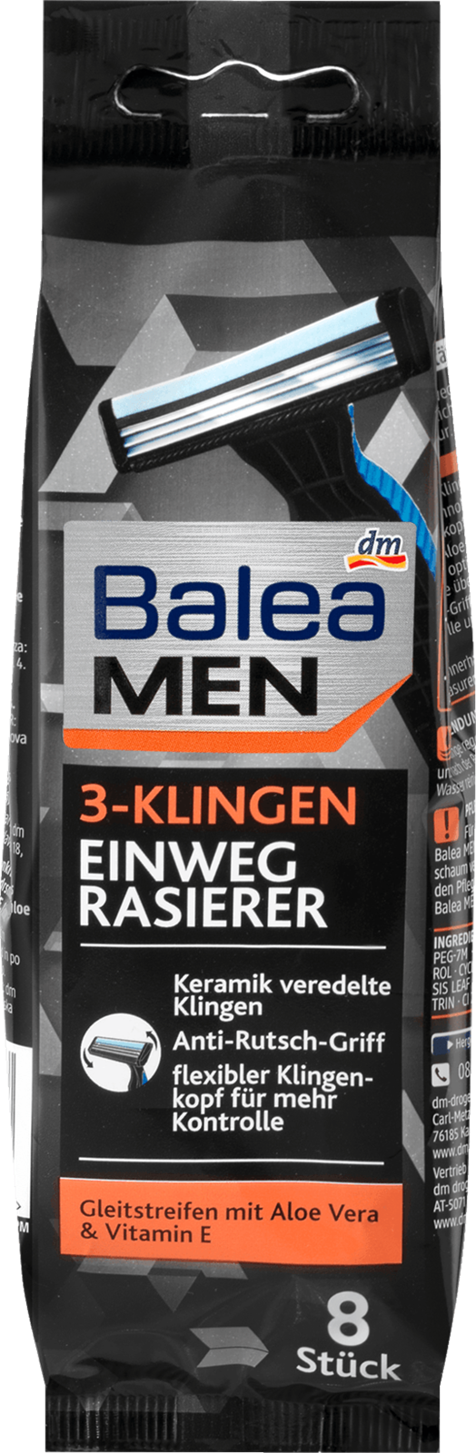 W opakowaniu znajduje się 8 sztuk maszynek, co sprawia, że Balea Men Jednorazowa Maszynka do Golenia 3 ostrza to idealne rozwiązanie na dłużej. Zamów już dziś i przekształć swoją codzienną rutynę w luksusowy rytuał pielęgnacyjny.