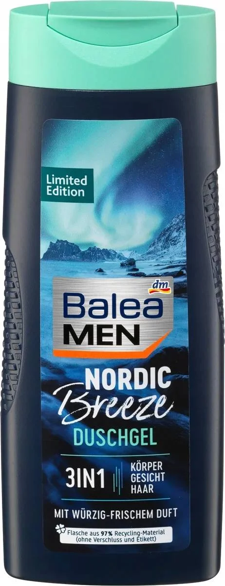 Żel pod prysznic Balea Men Nordic Breeze to idealny wybór dla aktywnych mężczyzn. Zapewnia uczucie świeżości po treningu, orzeźwiając i odświeżając skórę. Dzięki zawartości mięty wodnej oraz mentolu, każdy prysznic staje się przyjemnością. Formuła żelu jest łagodna dla skóry, co sprawia, że jest ona gładka i miła w dotyku.