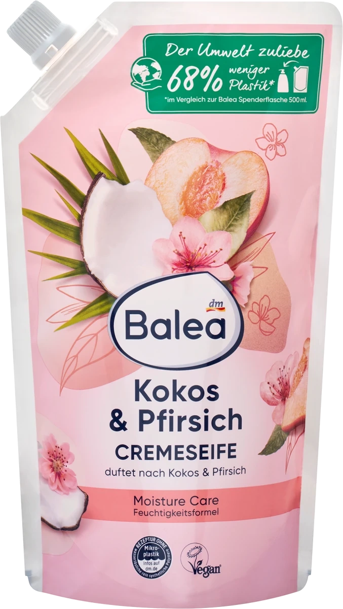 Balea Pfirsich & Kokos to wyjątkowe mydło w płynie, które łączy w sobie owocowo-słodki aromat brzoskwini z kojącym zapachem kokosa. Produkt to nie tylko przyjemność dla zmysłów, ale także kompleksowa pielęgnacja Twojej skóry. Dzięki formule Moisture Care, mydło zapewnia skórze niezbędne nawilżenie, chroniąc ją przed nadmiernym wysuszeniem. Bez mikroplastiku i sztucznych polimerów, receptura dba nie tylko o Twoją skórę, ale także o środowisko. Pozwól sobie na chwilę relaksu i odprężenia podczas codziennej pielęgnacji.