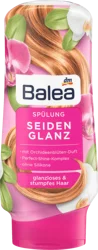 Odżywka do włosów Balea Seidenglanz o pojemności 300 ml sprawi, że Twoje włosy nabiorą jedwabistego blasku i elastyczności. Jej wyjątkowy zapach frangipani doda świeżości przy codziennym użytkowaniu. Dzięki kompleksowi odbudowującemu, który zawiera witaminę B3 i prowitaminę B5, włosy stają się jędrne i lśniące aż po same końce.