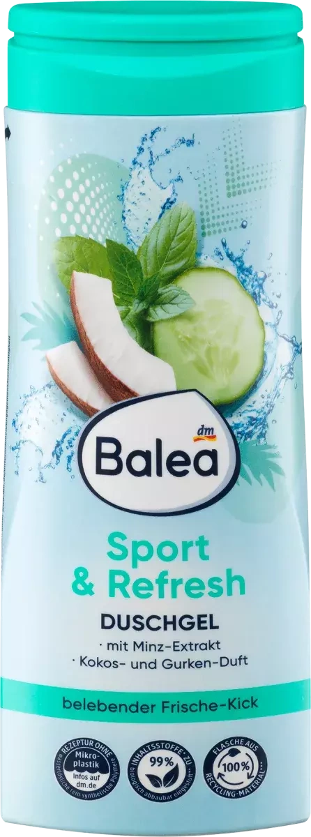 Żel pod prysznic Balea Sport & Refresh o pojemności 300 ml to idealny wybór dla osób szukających odświeżenia i pielęgnacji skóry. Dzięki orzeźwiającemu zapachowi kokosa i ogórka, codzienna kąpiel staje się przyjemnością. Produkt zawiera ekstrakt z mięty, który zapewnia łagodną formułę, chroniąc skórę przed wysuszeniem.