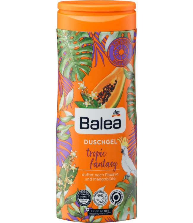 Balea Tropic Fantasy to żel pod prysznic o pojemności 300 ml, który przeniesie Cię w tropikalny świat pełen aromatów. Jego zapach papai i kwiatu mango sprawia, że każda kąpiel staje się zmysłową przygodą. Idealny do codziennej pielęgnacji, pozwala na chwilę relaksu i odprężenia w domowym zaciszu.