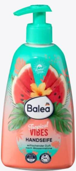 Odkryj letnią podróż pielęgnacyjną z Balea Tropical Vibes! To mydło w płynie o pojemności 500 ml urzeka orzeźwiającym zapachem arbuza, który przenosi Cię w słoneczne klimaty. Każde mycie rąk staje się osobistą chwilą relaksu i opieki.