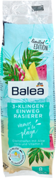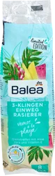 Maszynka do golenia Balea zapewnia komfortowe i skuteczne golenie dzięki trzem ostrzom, które gwarantują gładką skórę. Jest to produkt jednorazowy, co czyni go bardzo praktycznym w użyciu. Dodatkowo, maszynka wyposażona jest w pasek z aloesem i witaminą E, co wpływa na pielęgnację skóry podczas golenia.