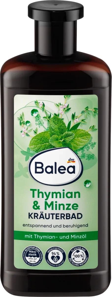 Poczuj odprężenie i relaks w każdej kąpieli dzięki Balea Ziołowemu Płynowi do Kąpieli z Olejkiem z Tymianku i Mięty. Ten wyjątkowy produkt, o pojemności 500 ml, zapewnia doskonałe uczucie relaksu dla ciała i umysłu. Delikatnie pieniący się płyn z olejkami eterycznymi pozwala na regenerację po długim dniu oraz przywraca wewnętrzną równowagę.