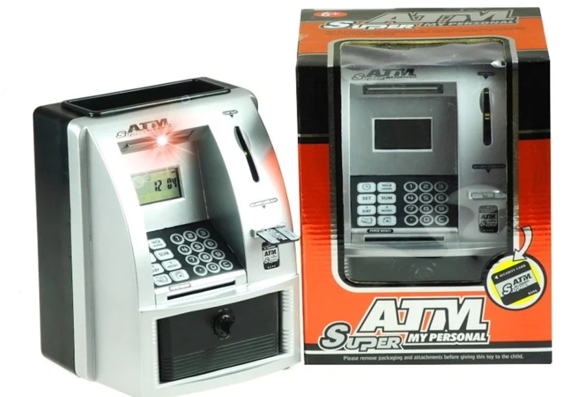 Bankomat skarbonka działa identycznie jak prawdziwy bankomat.