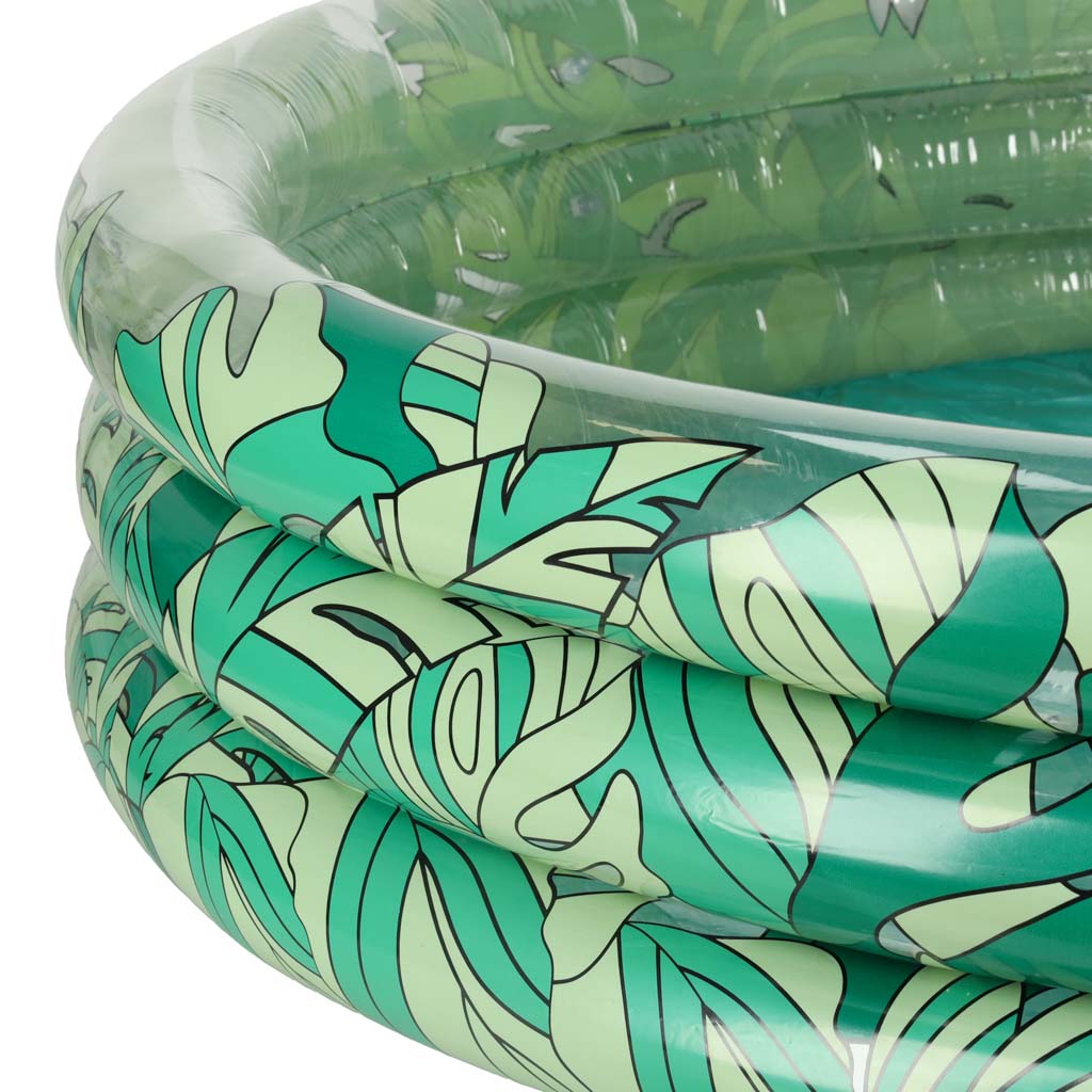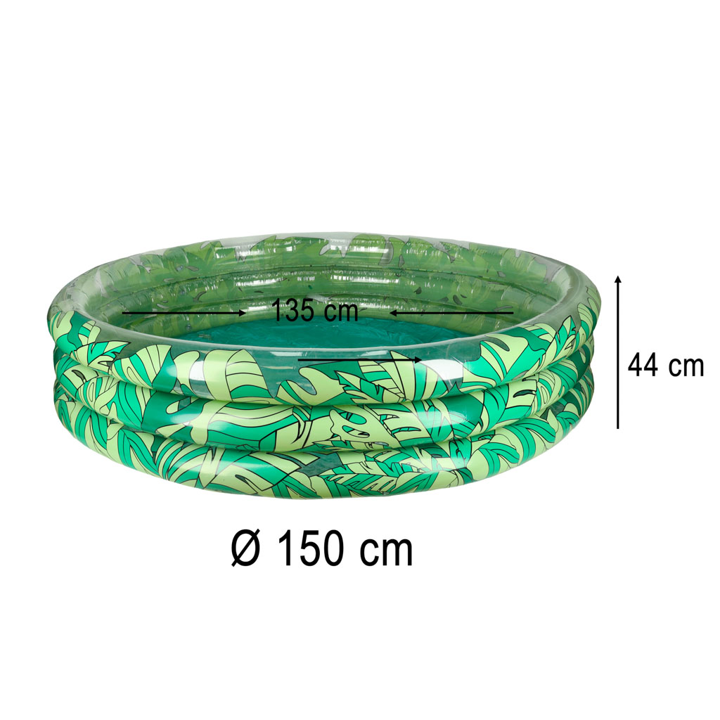 Basen wykonany jest z wysokiej jakości materiałów, które są trwałe i bezpieczne dla dzieci. Jego piękny wzór w zielone liście nie tylko przyciąga wzrok, ale także stanowi atrakcyjną dekorację w ogrodzie.