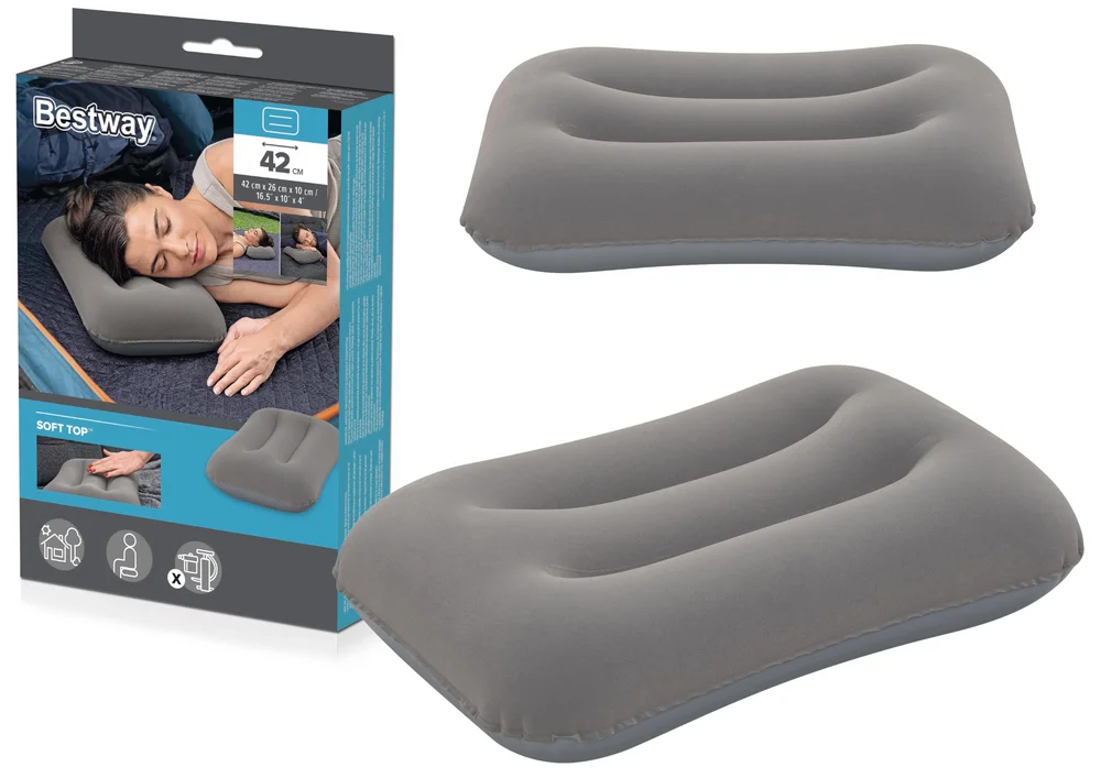 Dmuchana Poduszka Welurowa Szara 42 cm Bestway 67121