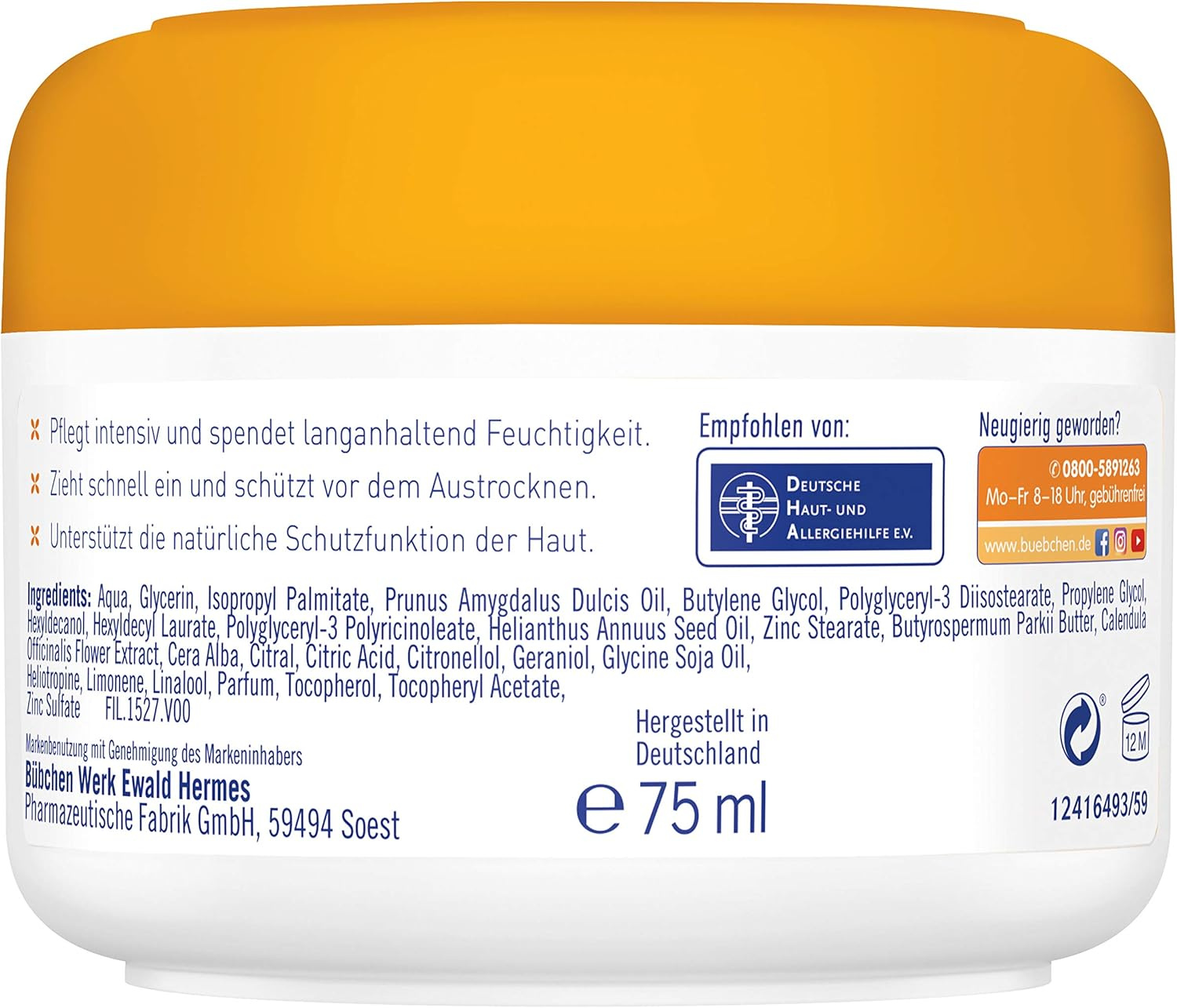 Bübchen Calendula to łagodny krem do twarzy stworzony specjalnie z myślą o wrażliwej skórze dzieci i niemowląt. Zawiera naturalny ekstrakt z nagietka lekarskiego, który intensywnie nawilża, koi podrażnienia i wspiera naturalne funkcje ochronne skóry.