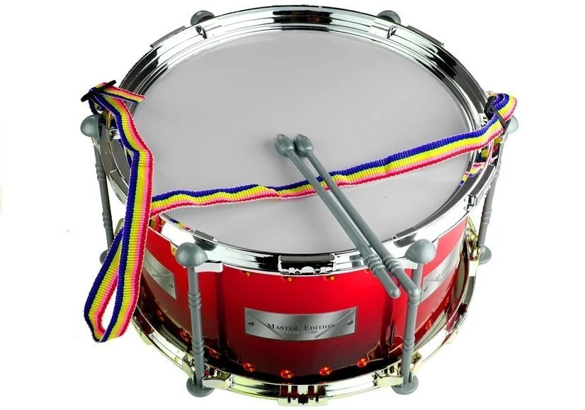 Bębenek charakteryzuje się solidną konstrukcją, która zapewnia trwałość i odporność na intensywną zabawę. Jego czerwono-biała kolorystyka wzbogacona jest o połyskujące srebrne i szare elementy, dzięki czemu wygląda jak prawdziwy instrument muzyczny. Do zestawu dołączone są dwie lekkie pałeczki, idealnie dopasowane do małych rączek dziecka, co sprawia, że gra na bębenku jest wygodna i intuicyjna.