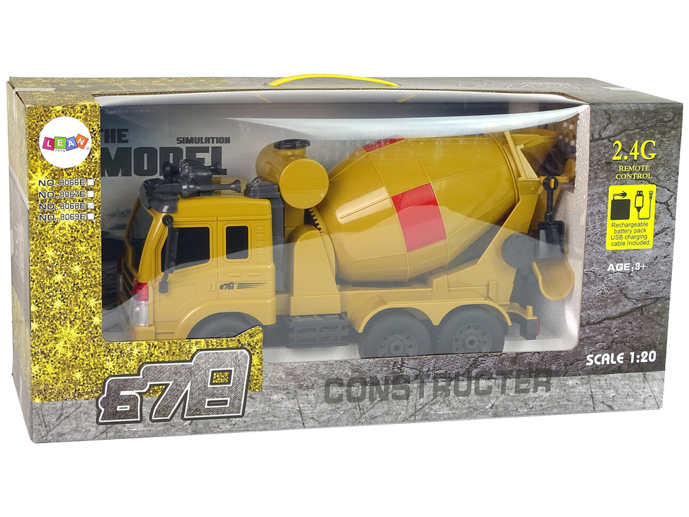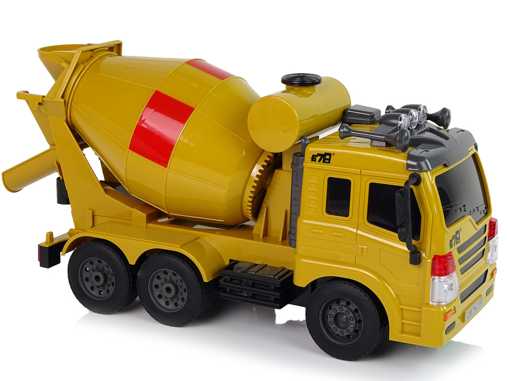 Kabina kierowcy ma kolor żółty z charakterystycznymi elementami dla ciężarówki, na naczepie znajduje się obrotowa czarna gruszka. Zaletą tego pojazdu jest zdalne sterowanie, pilotem dołączonym do zestawu można przemieszcza się po swoim stworzonym placu budowy. Nadaje na częstotliwość 2,4G, a za pomocą przycisków odkrywa wiele funkcji, które zadowolą najbardziej wymagającego fana pojazdów R/C. Ruchomy zsyp pozwala na zabawę żółtymi kamyczkami, które wylatują wprost do pojemnika.