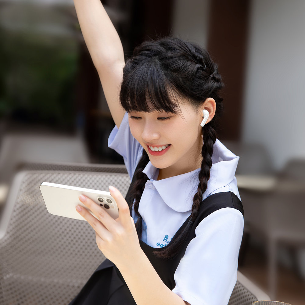 Średnica głośnika wynosząca 13 mm oraz zastosowanie tytanowego materiału gwarantują czysty i głęboki dźwięk. Dzięki technologii Bluetooth 5.0 możesz cieszyć się stabilnym połączeniem z telefonem w promieniu do 10 m.