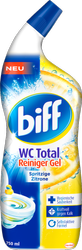 Biff WC Total Spritzige Zitrone to skuteczny żel do czyszczenia toalet, który zapewnia doskonałe rezultaty. Dzięki swojej formule dokładnie usuwa kamień, brud oraz plamy, gwarantując lśniące i świeże toalety. Produkt w pojemności 750 ml wypełnia łazienkę przyjemnym zapachem, co sprawia, że codzienne sprzątanie staje się przyjemnością.