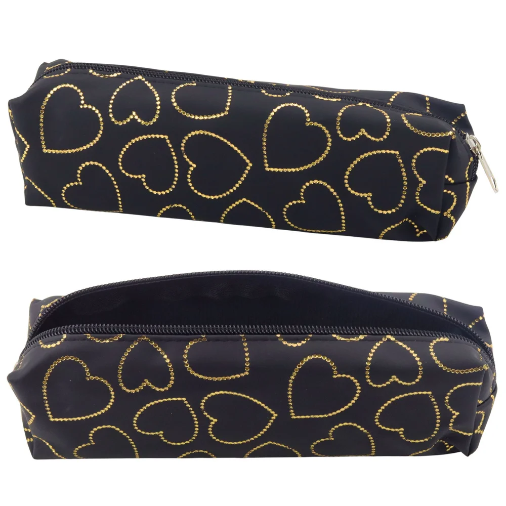 Piórnik Szkolny Biurowy Jednokomorowy Złote Serca Czarny 20x6,5 cm