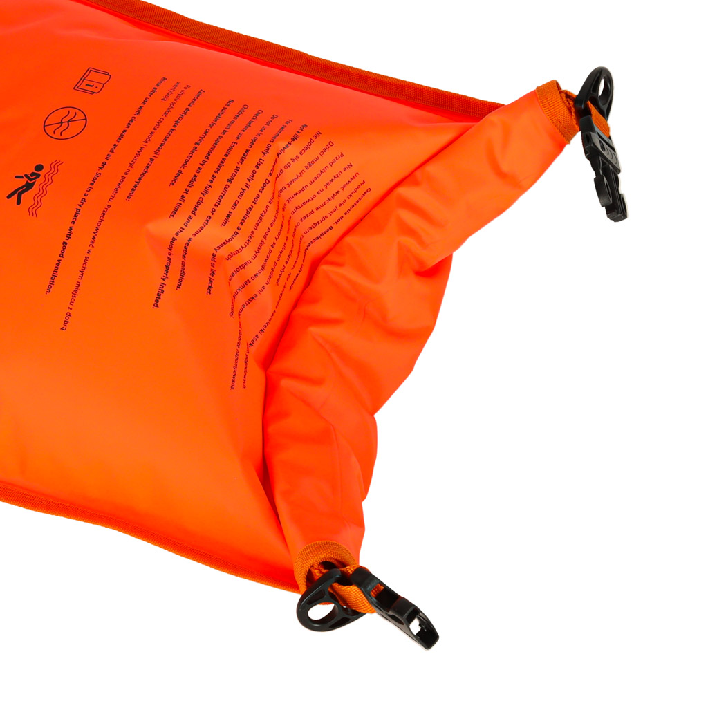 Konstrukcja bojki opiera się na dwóch niezależnych komorach powietrznych, co zwiększa jej niezawodność. W zestawie znajduje się pas do holowania, który jest regulowany od 63 do 120 cm, a także wbudowany gwizdek ratunkowy do szybkiego wzywania pomocy w sytuacjach awaryjnych. Intensywny pomarańczowy kolor bojki zapewnia doskonałą widoczność na wodzie, co jest niezwykle ważne w trudnych warunkach.