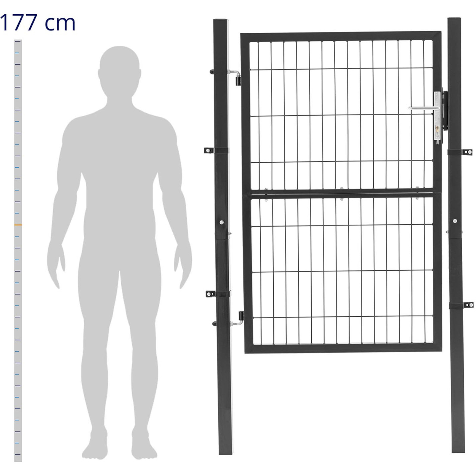 Wysokiej jakości metalowa furtka ogrodowa to idealne rozwiązanie dla Twojego ogrodu, tarasu lub trawnika. Dzięki solidnej konstrukcji z stali malowanej proszkowo, bramka ta jest odporna na niekorzystne warunki atmosferyczne oraz rdzę. Jej wymiary to 105 x 191 cm, co czyni ją praktycznym elementem ogrodzenia.