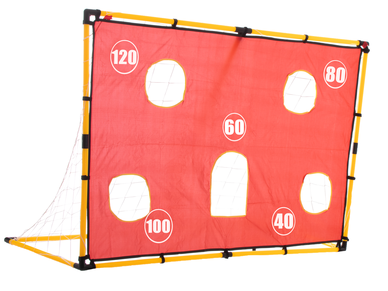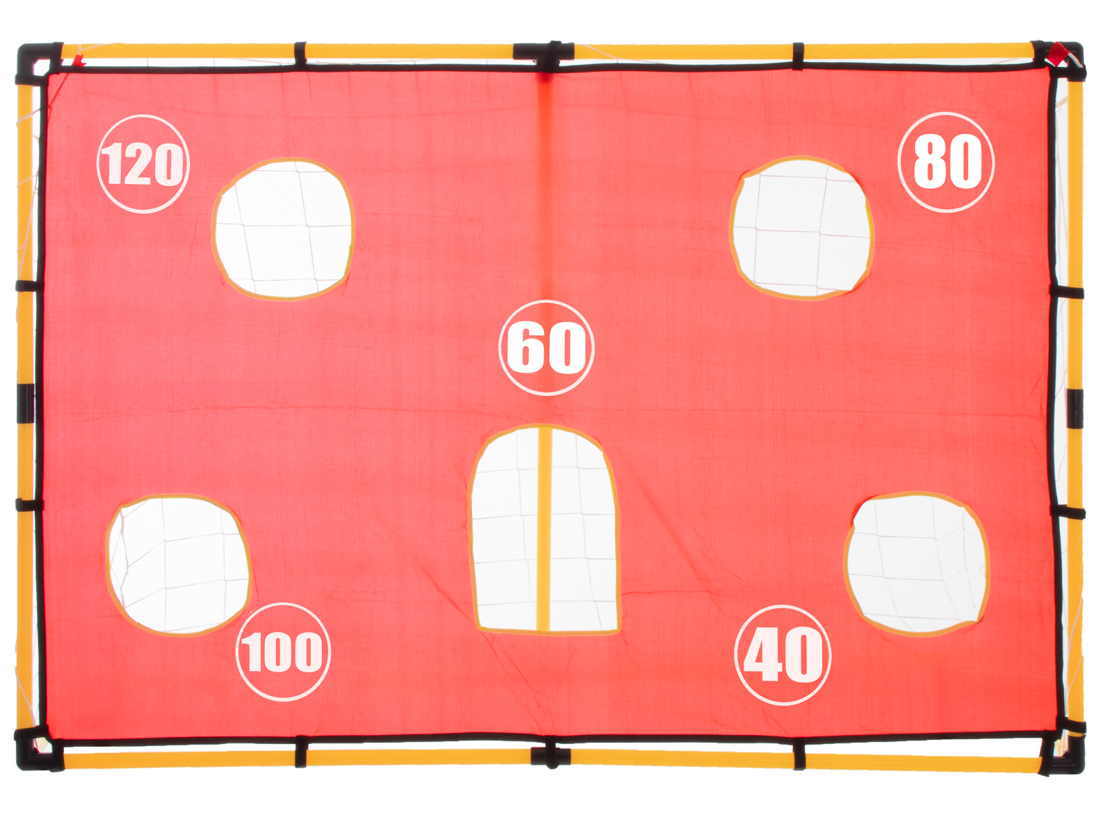 Duża bramka z matą, w której znajdują się otwory, umożliwia trenowanie celnych strzałów bez potrzeby angażowania bramkarza. Jeśli lubisz rywalizację, zorganizuj zawody z przyjaciółmi. Mata posiada cyfry, które oznaczają punkty za trafienia.
