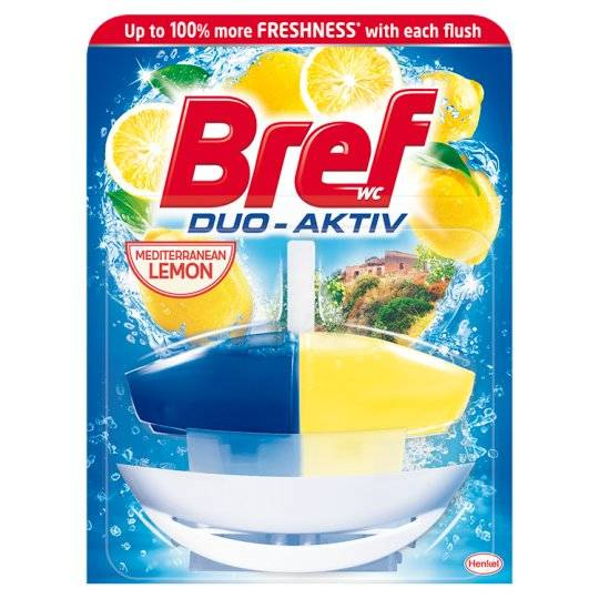 Odkryj higieniczną dwukomorową kostkę do toalet Bref Duo-Aktiv o intensywnym zapachu cytryny. Ta innowacyjna zawieszka WC skutecznie łączy działanie antybakteryjne z przyjemnym aromatem, pozostawiając Twoją toaletę świeżą i wolną od nieprzyjemnych zapachów.