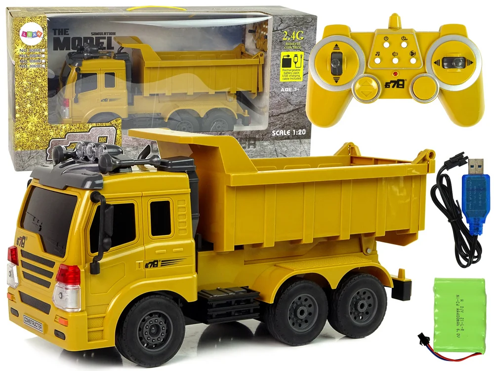 Zdalnie Sterowana Ciężarówka 1:20 Unoszony Dźwig Pilot 2,4G Dźwięk Światła