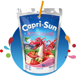 Odkryj smakowity napój Capri Sun Mystic Dragon, który przeniesie Cię do świata baśniowych przygód. Dzięki orzeźwiającemu połączeniu smaku smoczego owocu, bananów, truskawek, jabłek i winogron, każdy łyk to prawdziwa uczta dla podniebienia.
