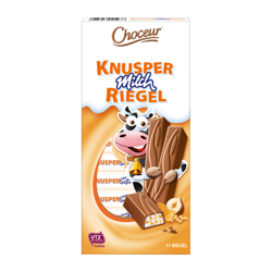 Odkryj smakowite batoniki mleczne Choceur Knusper. W opakowaniu znajdziesz 11 batoników z kremowym nadzieniem, wzbogaconym płatkami kukurydzianymi i orzeszkami. To idealna przekąska na każdą okazję!