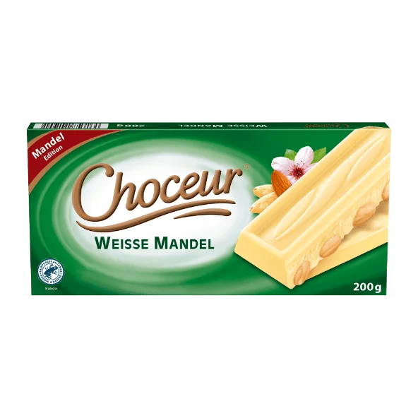Odkryj Choceur Weisse Mandel, białą czekoladę z migdałami, która zachwyca wyjątkowym smakiem. Każdy kawałek to połączenie delikatności białej czekolady oraz chrupiących migdałów, tworząc niepowtarzalną harmonię smaków.