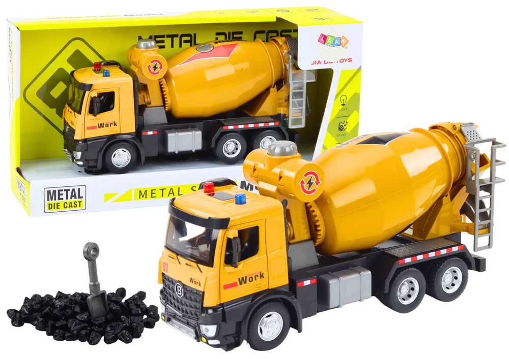 Nasza żółta betoniarka z ruchomymi elementami i napędem frykcyjnym to najlepszy wybór dla każdego młodego miłośnika budownictwa.