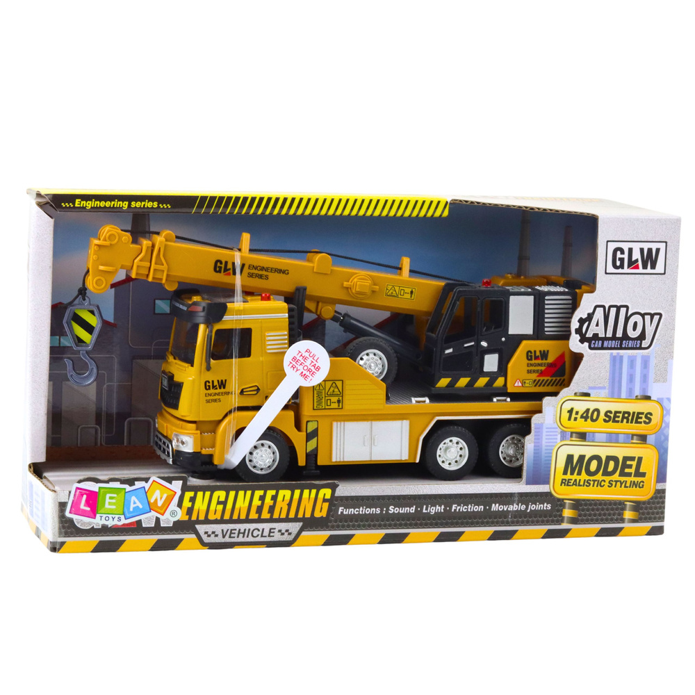 Dodatkową atrakcją są efekty świetlne i dźwiękowe, które sprawiają, że zabawa staje się jeszcze bardziej realistyczna. Dźwig został napędzany metodą pull-back, co pozwala na samodzielną jazdę po naciągnięciu. Solidna konstrukcja z metalową karoserią gwarantuje trwałość, a szczegółowe wykończenie nadaje zabawce profesjonalny wygląd.