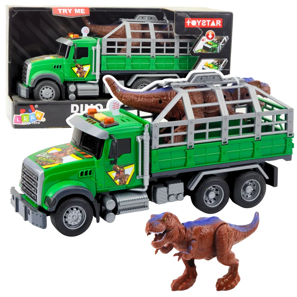 CIĘŻARÓWKA TRANSPORTOWA Z DINOZAUREM – EFEKTY ŚWIETLNE I DŹWIĘKOWE