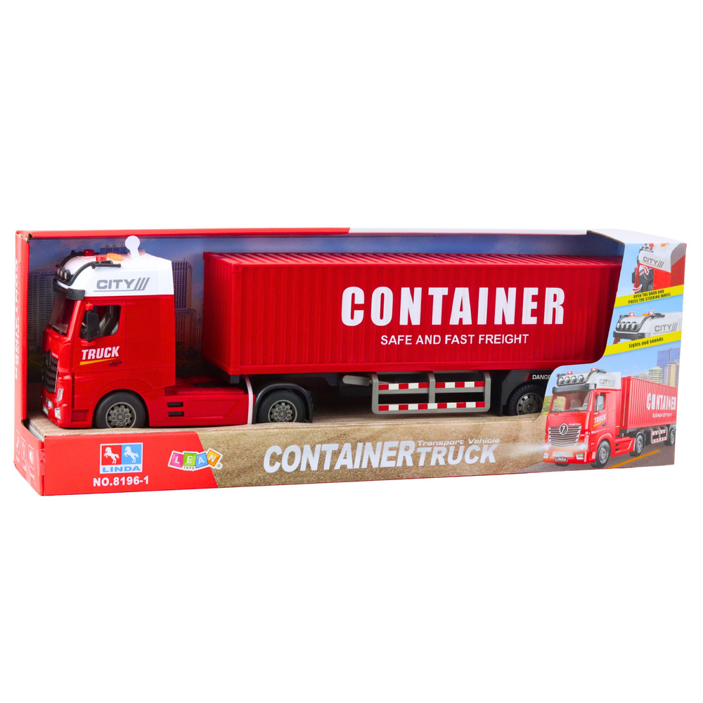 Czerwona ciężarówka transportowa z kontenerem to imponujący model pojazdu ciężarowego z serii City Series, który zapewnia dzieciom realistyczne doświadczenia transportowe. Zestaw składa się z ciągnika siodłowego i długiej naczepy z odpinanym kontenerem – idealnej do zabawy w przewóz ładunków, przeładunek czy budowę własnych scenariuszy logistycznych.