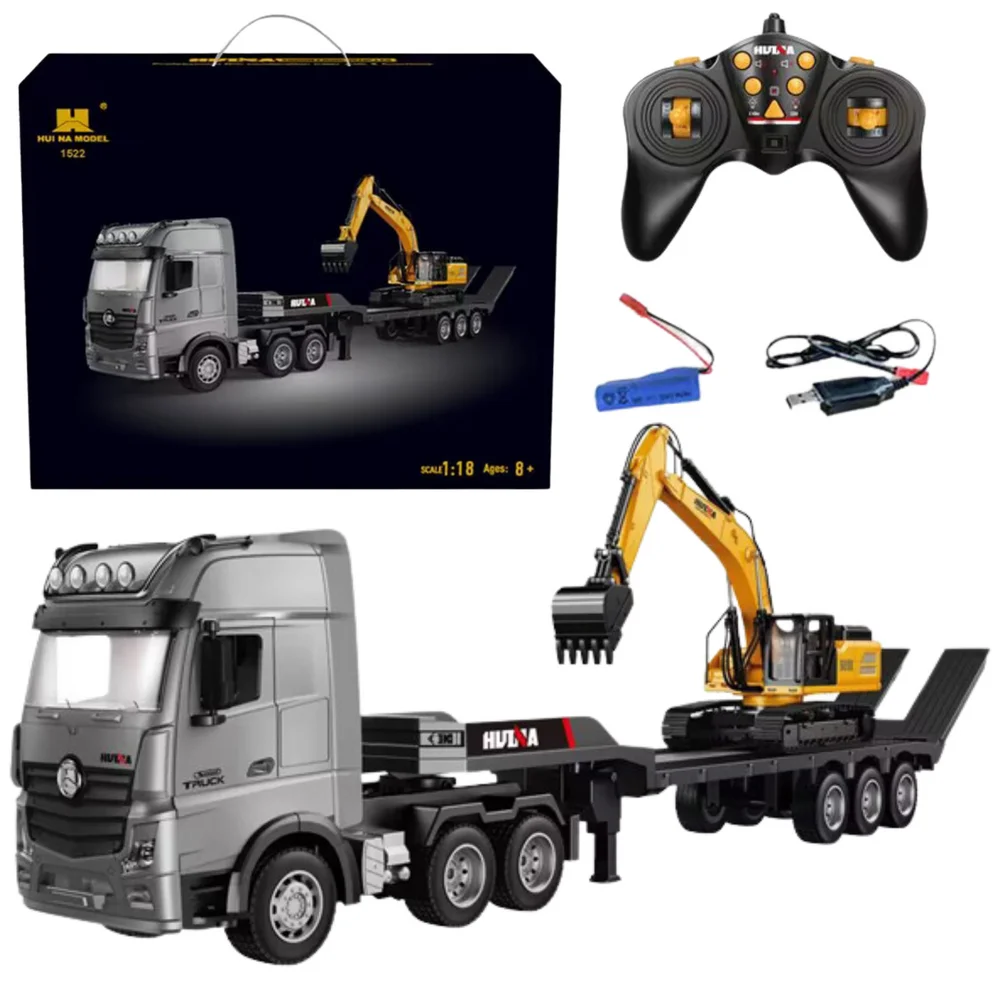 CIĘŻARÓWKA ZDALNIE STEROWANA Z NACZEPĄ I KOPARKĄ HUINA1:18