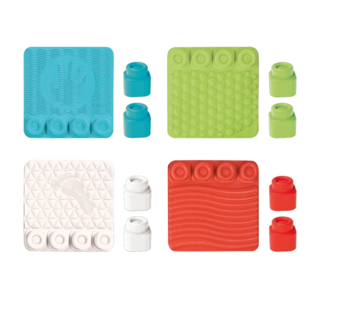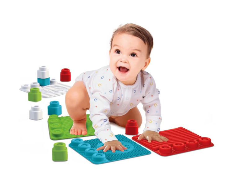 Rozwijająca zmysł dotyku ścieżka, którą można zbudować, składając duże elementy wykonane z miękkiej, bezpiecznej i nietoksycznej gumy, zaprojektowana po to, aby zapewnić niemowlętom ciekawe i wciągające doświadczenie. Elementy mają różnorodne chropowate tekstury, które stymulują percepcję dotykową dziecka. Na elementach znajdują się kształty klocków Clemmy, dzięki czemu dziecko może oddać się radosnemu dopasowywaniu klocków, aby stworzyć mnóstwo wież. Stymuluje percepcję dotykową, umiejętności obserwacyjne oraz zdolności manualne. Produkt przeznaczony dla dzieci powyżej 6 miesiąca życia.