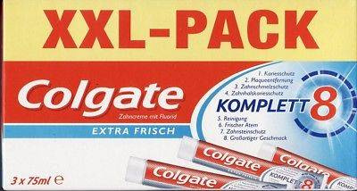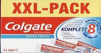 Pasta do zębów Colgate Komplett 8 Extra Frisch to produkt, który zapewnia wszechstronną ochronę Twoich zębów. Dzięki regularnemu szczotkowaniu, skutecznie chroni przed próchnicą, usuwa płytkę nazębną oraz wspiera ochronę szkliwa. Dodatkowo, pomaga uzyskać bielsze zęby oraz długotrwały świeży oddech.