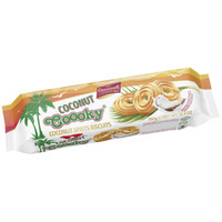 Składniki: mąka pszenna, cukier, tłuszcz palmowy, wiórki kokosowe 13%, pełnemlekow proszku, mąka sojowa, skórka z cytryny, syrop glukozowo-fruktozowy, sól, naturalne aromaty, substancje spulchniające (wodorowęglan sodu, wodorowęglan amonu), emulgator (lecytyny (soja)
