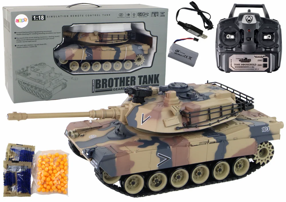Czołg USA M1A2 RC 1:18 Piaskowy Sterowany Zdalnie