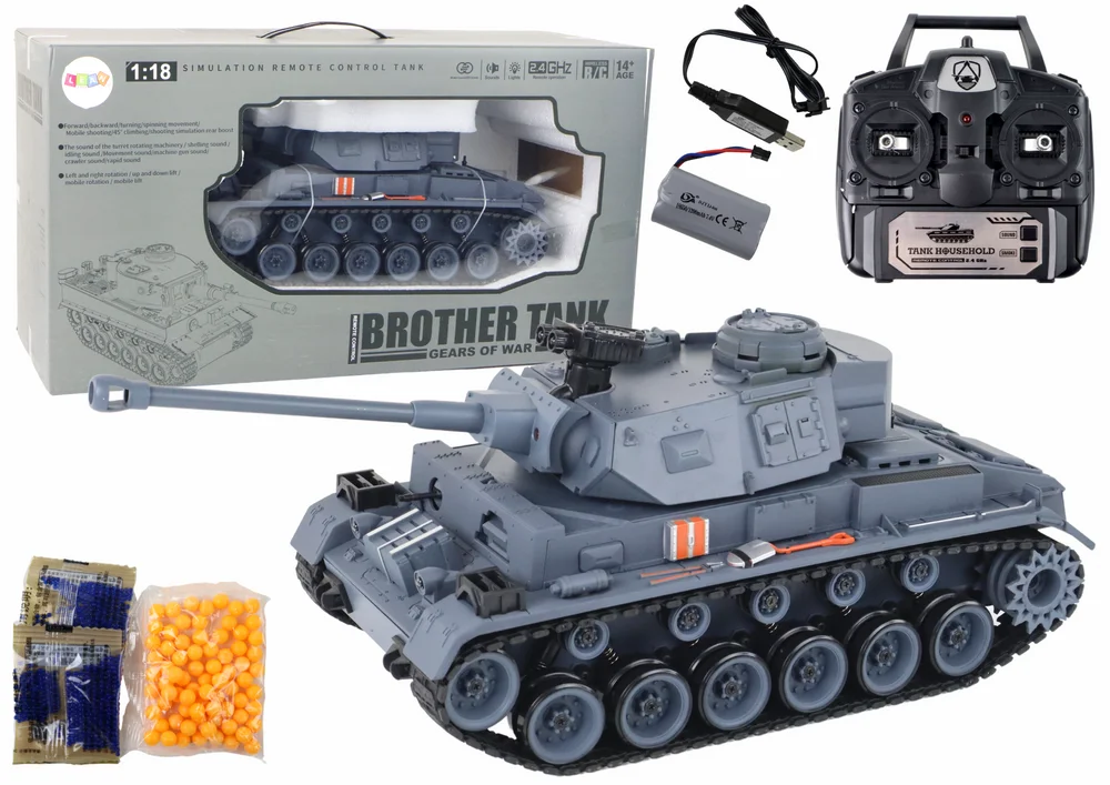Czołg Zdalnie Sterowny RC 1:18 Armata Dym Tarcza Dźwięki Szary