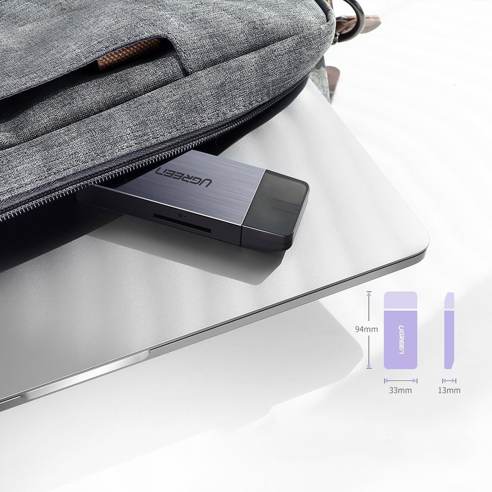 Oferujemy funkcjonalny czytnik kart pamięci 4w1 marki Ugreen, który umożliwia szybki transfer danych dzięki złączu USB 3.0. Prędkość transferu osiąga do 5 Gbps, co sprawia, że praca z danymi staje się szybka i efektywna.