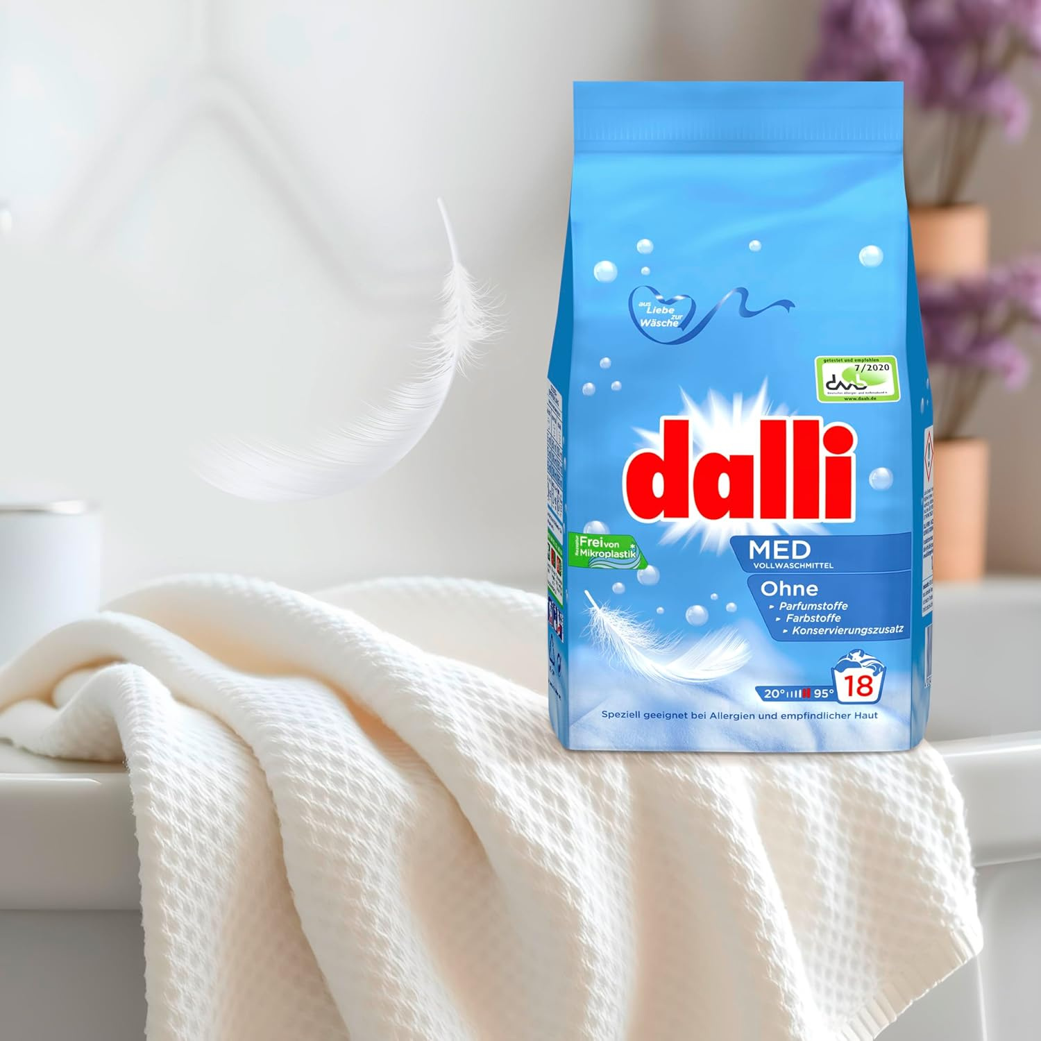 Dalli Med Proszek do Prania 18 prań to doskonały wybór dla osób z wrażliwą skórą oraz alergików. Jego hipoalergiczna formuła, wolna od barwników i substancji zapachowych, zapewnia delikatność dla skóry, jednocześnie skutecznie eliminując zabrudzenia.