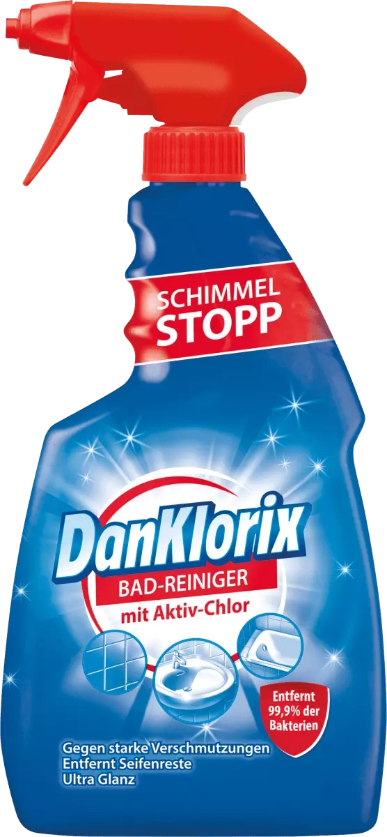 Środek do czyszczenia łazienki DanKlorix z aktywnym chlorem to skuteczne rozwiązanie w walce z bakteriami i pleśnią. Dzięki niemu z łatwością usuniesz plamy pleśniowe z różnych powierzchni, takich jak fugi, zasłony prysznicowe, kafelki oraz mur. Umywalka, wanna, toaleta i armatura będą lśnić czystością bez smug.