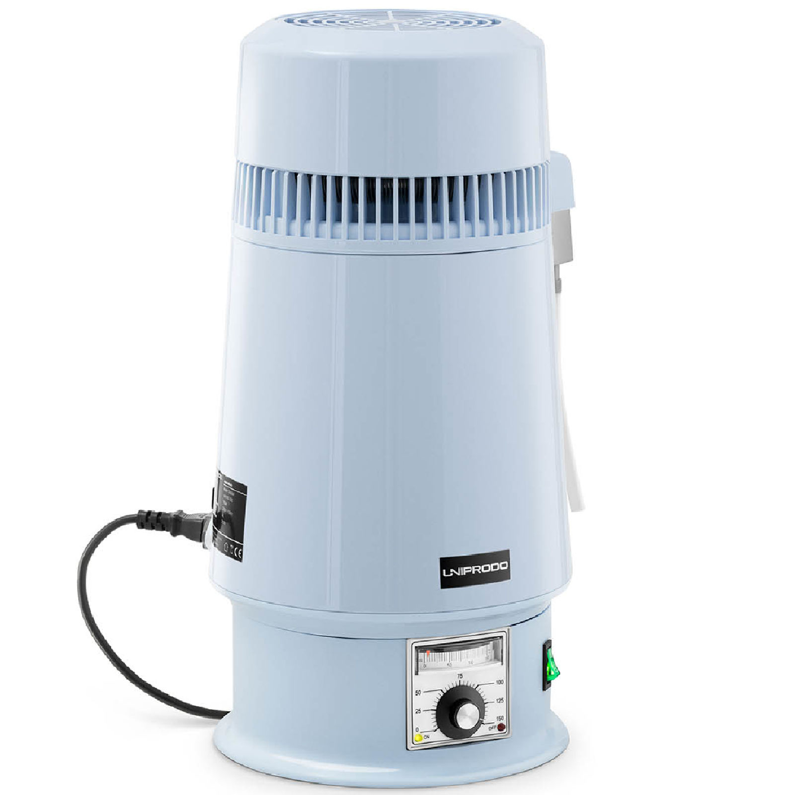 Destylator umożliwia precyzyjną regulację temperatury. Automatyczne wyłączanie po osiągnięciu 160°C zapewnia bezpieczeństwo użytkowania. Woda uzyskana z tego urządzenia jest odpowiednia nie tylko do picia, ale także do zasilania sprzętów takich jak żelazka i parownice.