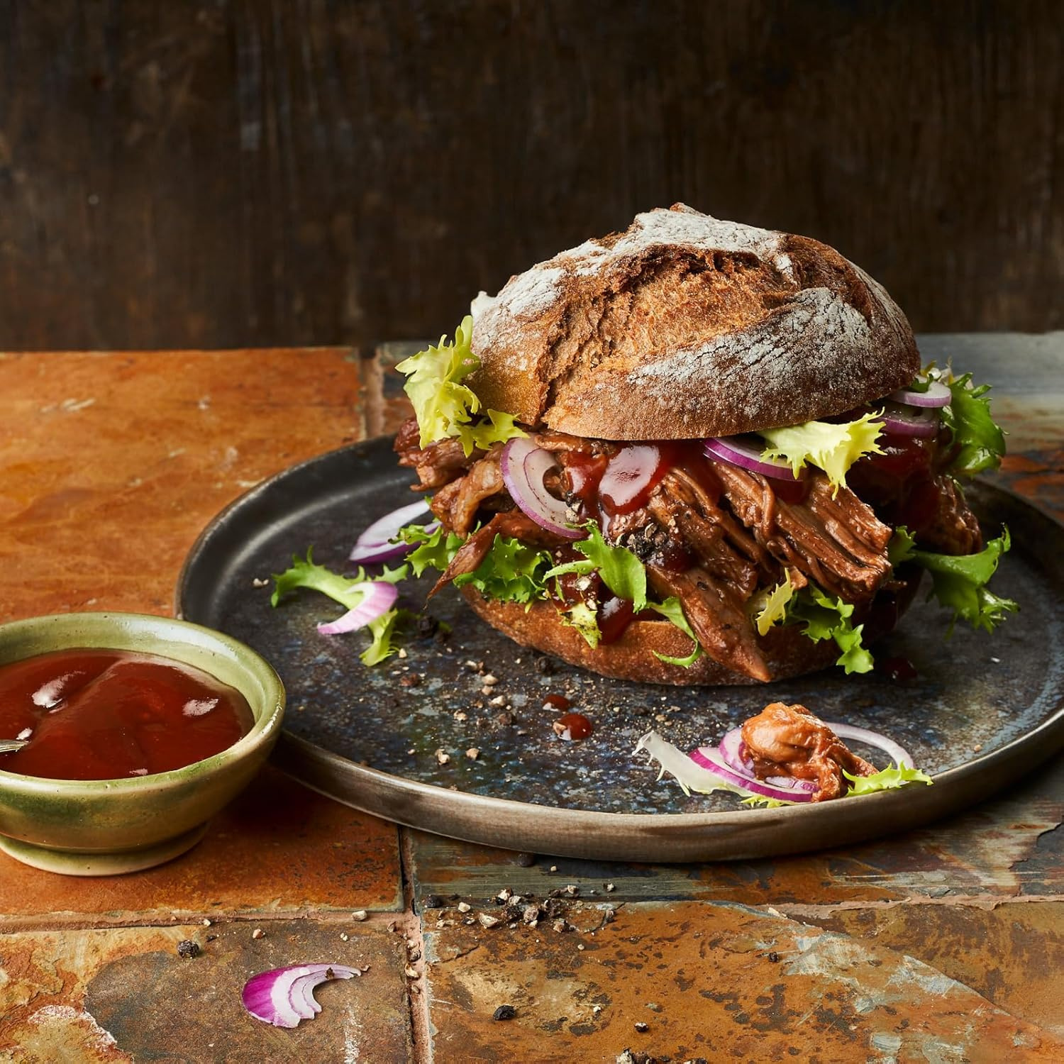 Składniki:36% koncentrat pomidorowy, cukier, ocet z czerwonego wina, 6,5% sok ananasowy z koncentratu soku ananasowego, ocet spirytusowy*, skrobia modyfikowana, sól, karmelowy syrop cukrowy, przyprawy (z MUSZTARDĄ), olej rzepakowy, substancja zagęszczająca (guma ksantanowa), aromat dymu wędzarniczego. (* dla AT: ocet spirytusowy / dla CH: ocet stołowy)