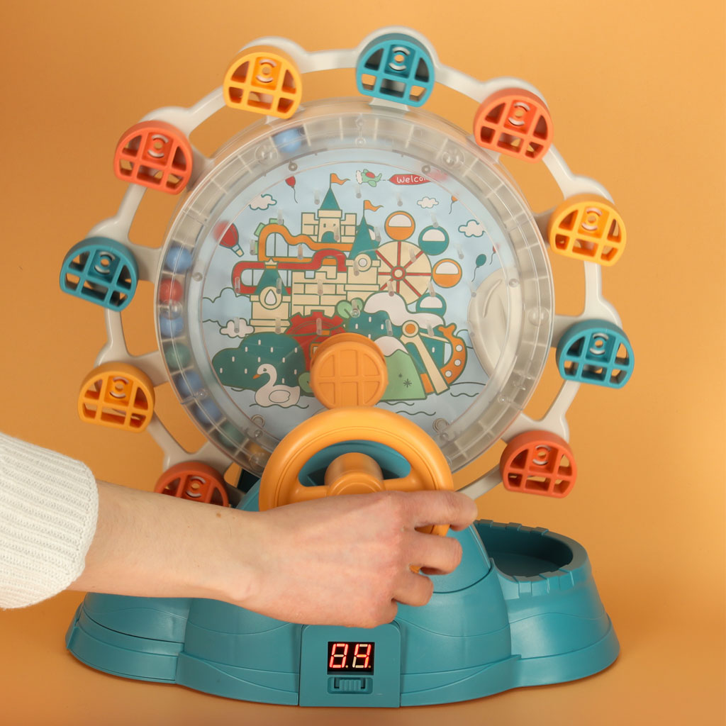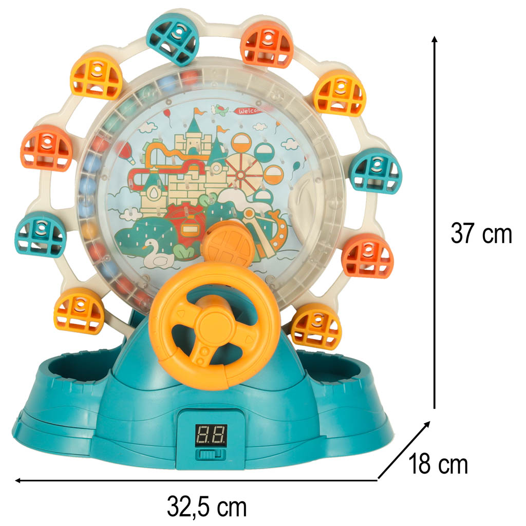 W tej atrakcyjnej zabawce kulki są w ciągłym ruchu, a specjalny mechanizm wystrzeliwujący pozwala na ich podnoszenie i opuszczanie. Dziecko musi wykazać się refleksem, aby prawidłowo naprowadzić pojemnik na kulki, co rozwija jego zdolności manualne oraz umiejętność koncentracji.