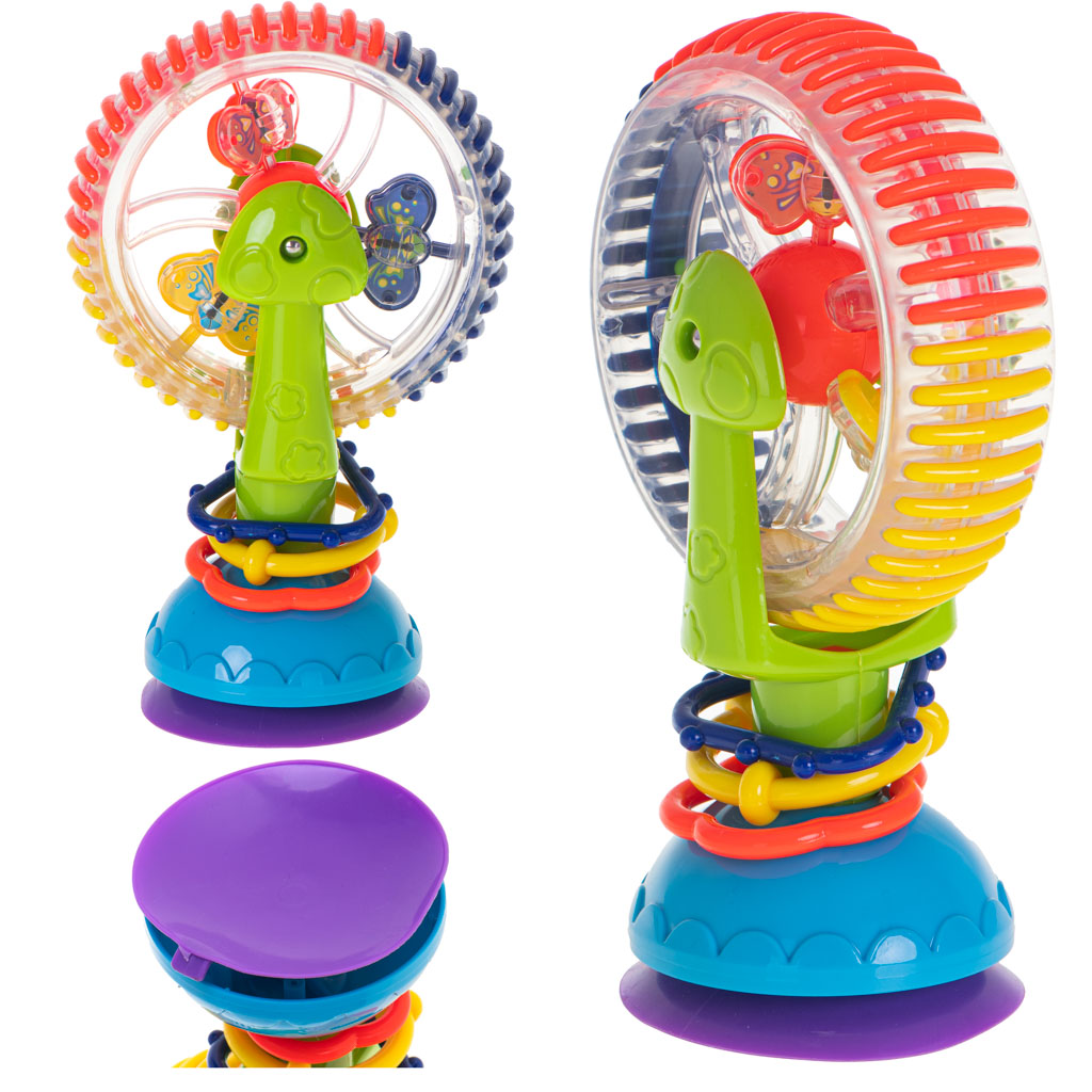 Kolorowa zabawka, która przypomina diabelski młynek, zachwyci Twojego maluszka. Żywe kolory przyciągną uwagę i zachęcą do zabawy.