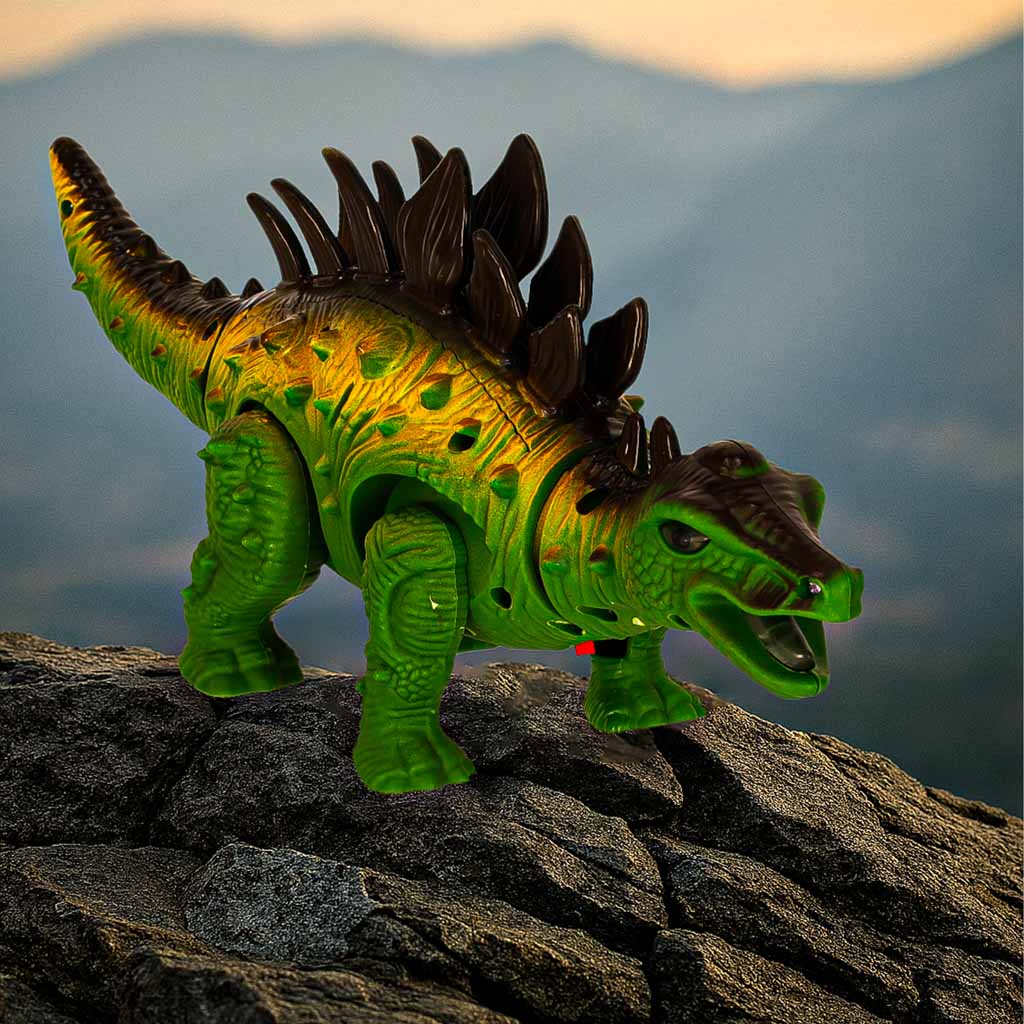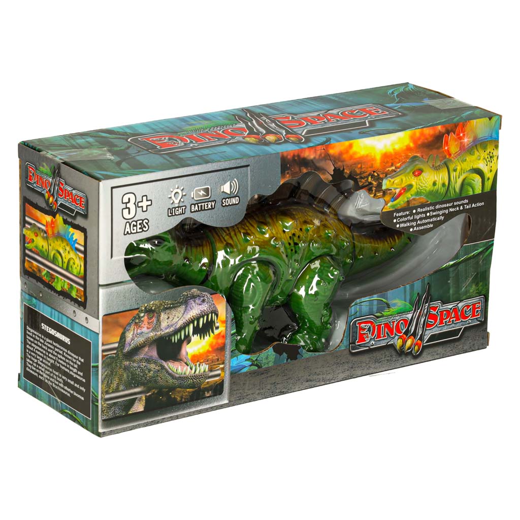 Dinozaur Stegozaur zabawka interaktywna na baterie chodzi świeci ryczy